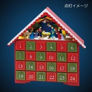 LEDウッドアドベントカレンダーハウス型ネイティビティ置物