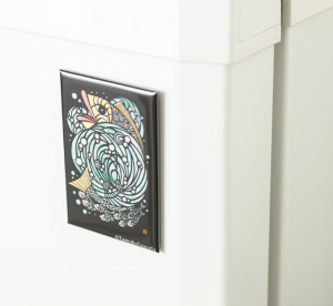 表面は大変光沢のあるスチール製、裏面にはシートタイプのマグネットがついています。
